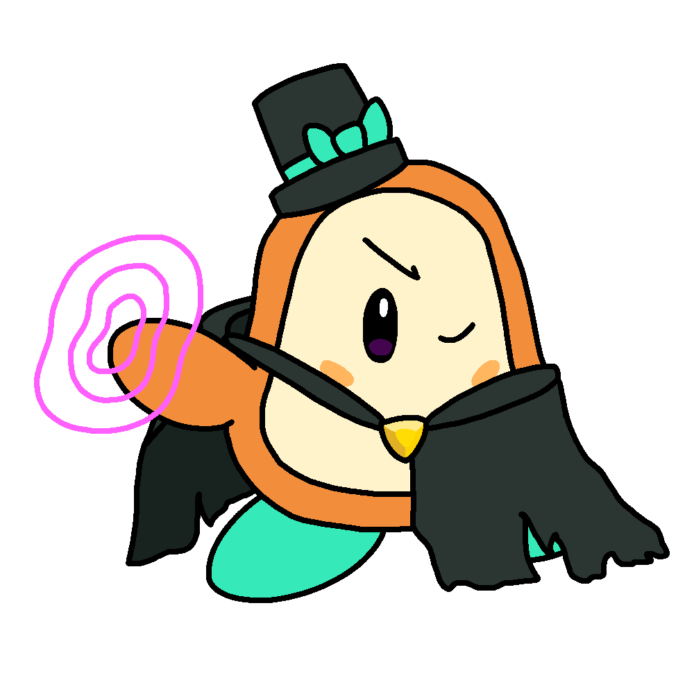 A drawing of Psydee, a waddle dee wearing a top hat and a slightly tattered cloak.